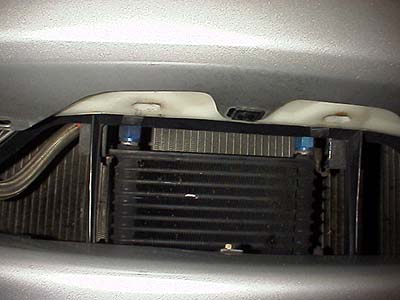 ↑こちらはHKSの安い方のオイルクーラーキット。コアはデフォルトでこの位置に付くようになっている。左側にオフセットした状態になるわけ。コアの向きが縦向きなのが違和感を誘う(笑)。風導版を兼ねたステーが付属するのでこれもボルトオンで付く。ちなみにこの風導板は良く出来ている。