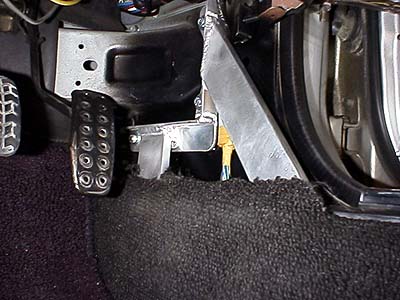 これは足元はこんな感じになる。足元の内装はちょっと切るだけで付くらしい。ちょこっと見える黄色い配線は、フレームに固定してあるバンドを外して遊ばせておく。写真の位置に配線を持ってくれば問題無い。 このバーはアクセルワークの邪魔にはならない。