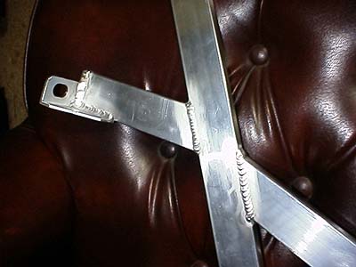 さて、実物を手にしてまず感じたのは驚くほどの軽さ。計ってないけど片側分1Kg前後だと思う。小指1本でも軽々と持てるくらいですわ。各部の仕上げは美しいです。試作品では斜めバーと縦バーが重ねて溶接してあったが、アレだと内装と干渉してしまう為に取付けが困難極まるってことが判明。そこで重ねて溶接するのはやめて別々の部品にして溶接する方式に変わった。