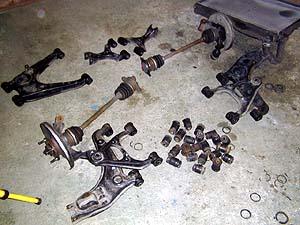 そこでサスペンションアームを全バラにしてブッシュを新品に総交換した。シャキっとした素晴らしい乗り味を期待して試乗したが、まったく変化が無かった。何の変化も無かった。ムダだった(笑)。ブッシュじゃないんだ...。一体なんだ? あのブルブル感はなんだ?