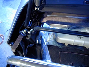 次はファッションバータイプのロールバーもどき。シートベルトアンカを左右に連結するので少しはボディ剛性が上がる。これも取り付け時にスペーサを増やしたり減らしたりしてテストしながら剛性感が上がるように取り付けた。が、コレはあんまし効果は無い。真っ直ぐな棒を横に入れれば効くのだが...。
