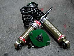 シートベルトアンカーを左右に結ぶ↑コレね。ボディ剛性がそこそこ上がった事、規制緩和でバネの変更に記載変更が必要無くなった事、これにより私はバネを交換するに至る。3.2Kgf/mm程度のバネ(バネレートはフロント、以後文中に登場するバネレートはすべてフロントの事を指す)でプリロードはかなり弱め(スプリングコンプレッサ要らず)のモノ。純正バネよりプリロードが弱くて初期の動きが良い分だけドタバタ感は減ったのだが、ブルブル感は変わらない。減衰力をどういじってもやっぱし変わらない。 バネはその後4.7Kgf/mmでプリロードゼロのモノを試し、6.0Kgf/mmのバネも試した。だがブルブルユサユサ感は変わらない。プリロードじゃない、バネレートでもない、バネじゃないんだ...。結局、ノーマルバネ、3.2Kgf/mm、4.7Kgf/mm、6.0Kgf/mm、と4種類のバネを使った。プリロードもそれぞれ違う。減衰力は調整幅の広いKONIでいろいろ試した。でもブルブル感は変わらない。あうあう...。