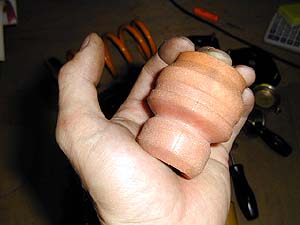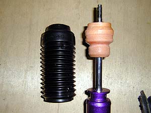 これはNBのバンプラバ。材質はウレタンだ。下側の細い部分はかなりしなやかで手で簡単に潰す事が出来る。そこから上の太くなってる部分は硬くて手では変形しない。2段構えの硬度でしなやかに底突くようになってる。長さそのものはNA用と変わらないのだが、これなら軽い底突き程度なら跳ねずに違和感なく通過できると思う。NAのモノは底突くといきなり硬いから飛ぶのだ。