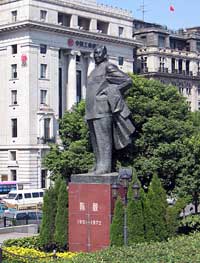 南京東路。向こうには浦東の高層ビルがあるはずだが、霞んで見えない。朝はいつもこんな感じらしい。