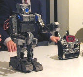 タカラが二足歩行ロボットを発表するってんで見に行く。会場に到着するとすでに満席状態でテレビカメラもキー局各社が出そろっていてなかなかな賑わいぶり。「AIBO」でも「ASIMO」でも、「ロボット」って表題に付くと1枚も2枚もバリューが上がってしまう横並び一線的メディアの態度は山手線事故の報道に通じる部分もあるけれど、それはそれとして一時期の低迷ぶりからカラオケのヒットでちょっぴり上向き加減にあるタカラのさらなる飛躍を期するとゆー意味で、注目が集まるのは決して悪いことじゃない。問題は期待を抱いて集まった人たちに対して「ASIMO」「SDR−3X」に匹敵するパフォーマンスを見せられるかってことになるんだけど、さすがに自動車3台分に1台分と比べるのは無理なんで、見る側も過大な期待は抱いていなかっただろーから、その意味で登場したロボットの見せてくれたパフォーマンスは、十分だったんじゃなかろーか。