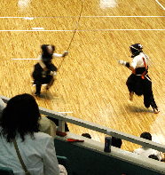 入ると剣道のよーな袴姿の女の子たちがウロウロとしていて、一瞬天国のよーな気分になったけど、廻りは武道家の卵ばかりで手にはめいめいが竹刀みたいなものとはいっても叩かれれば痛い武器を持っていたりするんで、嫌らしい目で眺めたりするのは無しにして、ひたすらフロアで繰り広げられている競技の方に集中する。向かい合って長刀をかまえて打ち合う姿は剣道のよーだけど、長さがあるんで間合いが剣道とは違うし面胴籠手を狙う剣道ともちょっと違って脛も防具がつけられていてそこも狙えるよーになっていて、下段に切っ先を振ると上がおそろかになって切り返されたりするから気が抜けない。長刀の持ち方も剣道みたく右手が決して前じゃなくって、相手の構えや使いたい技に応じて左手を前にして下に右手をそえたりと、自在に持ち替えているところに剣道との違いを見る。
