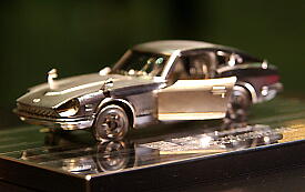 とはいえしかし20万円ともなると流石にエンスーでも身を引くトミカ40周年記念商品。アルミニウムを超精密に削り出せる技術を使って作られた「フェアレディZ432」は噂に違わす美しいボディラインからホイールからコックピットから何から何までが実車をそのまま小さくしたような精緻さで、手の中のあの憧れのZ432を置いておける気分を味わえそう。会場にはそんな実車のZ432も展示してあって、美しいフォルムを見せてくれていたけれど、買えばおそらくは1000万円近くはするらしい希少な車。それにくらべば20万円なんってって思わないでもないけれど、でもしかし……ってことでここは僕はフェアレディ派ではなくスカイライン派、これがケンメリのGT−Rだったら買ったかもなあと嘯き買わない理由にしておこう。