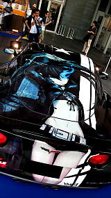 氷川竜介さんのブースをながめ「直言兄弟」のブースを嘗めて森川嘉一郎さんのところでバージョンアップ版を買い、とある法廷画の画伯の絵が貼られたブースを遠巻きにしつつ「マンガ論争3.0」のブースに挨拶してから会場を退散、だいたい40分くらいいたっけか。そこから電車を乗り継ぎ秋葉原へと出て「ブラック★ロックシューター祭り2010」を見物する。コミケ真っ盛りの有明から離れた場所で開かれいったいどれくらいの人が来るんだろうって心配したけど、それなりな人出で物販には行列ができて時間がかかりそうだったんで、絵とか痛車とか眺めて時間を過ごす。そのうちに空いてきたんで☆のマークが入ったTシャツを1購入。あと個人が「ブラック★ロックシューター」をモチーフに描いた絵がプリントされたクリアファイルなんかも。40種類を掲げてそれぞれにクリアファイルを作るとはまた太っ腹。だけどこういう参加意識を誘うやりかたがファンを増し、そこからファンが広がり商売になるっていった考えもあるんだろう。