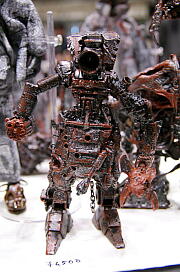 それから岐阜に拠点を構えてファッションとか、フィギュアなんかを提供しているMORE THAN HOMANさんによる「異形市民プロジェクト」へと回って観察、いやあ格好いいなあ、そしてとってもクール。見る人が近寄って立ち止まり写真に撮りたくなる気もすごく分かる。今回は値段もつけて売っていたけどメインのドールを加工して布製の衣装を着せたフィギュアは2万5000円でちょっと手が出ず、それでもプラスティックモデルの玩具とかいろいろなものを寄り集めて練ったような素敵デザインの異形フィギュアは1万円を切ったものも多くって、その中から顔がどことなくカメラのようでノーモア映画泥棒をスタイリッシュにしたらこんな感じかなあ、ってのがあったんで購入する。これとくずしまきんさん家のミクとで今回のワンフェスの買い物は終わり。あとは海洋堂のガチャでクワガタとか、村上隆さんのブースで「めめめのくらげ」の前売りチケットとか。山と抱えて買って帰ってももはや家には置く場所なければ作る場所もないのだった。それでも少しは買うところが人間、諦められない存在ってことを思わせる。将来売れっ子になると良いなあ異形市民プロジェクトもくずしまきんさんも。村上隆さんはもう有名だから良いや。