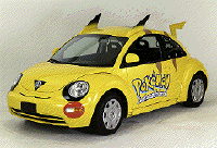 面白いメールと言えば任天堂から届いたのは、米国のド真ん中にあるカンザス州のトピカって多分ド田舎で、任天堂の米国子会社がポケモン展開一大キャンペーンを開いてますって内容。聞くとトピカって街がその日1日だけ正式に「トピカチュウ」って名前になって、住民が全員トミーなんかが発売しているよーなピカチュウのパジャマを着て、会ったら「ピカピカ」さようならは「チュウチュウ」とピカチュウ語を話さなくっちゃいけない。とゆーのは嘘だけど、少なくともピカチュウのペイントを施した新型ビートル10台が、全米の各地に向け出発したってのは本当の事らしく、メールに添付したった写真を見て、そのあまりの「ピカチュウぶり」に爆笑する。ちゃんと稲妻シッポが生えてるんだよ、目もあって口も描いてある。日本でも限定で売らんやろか。