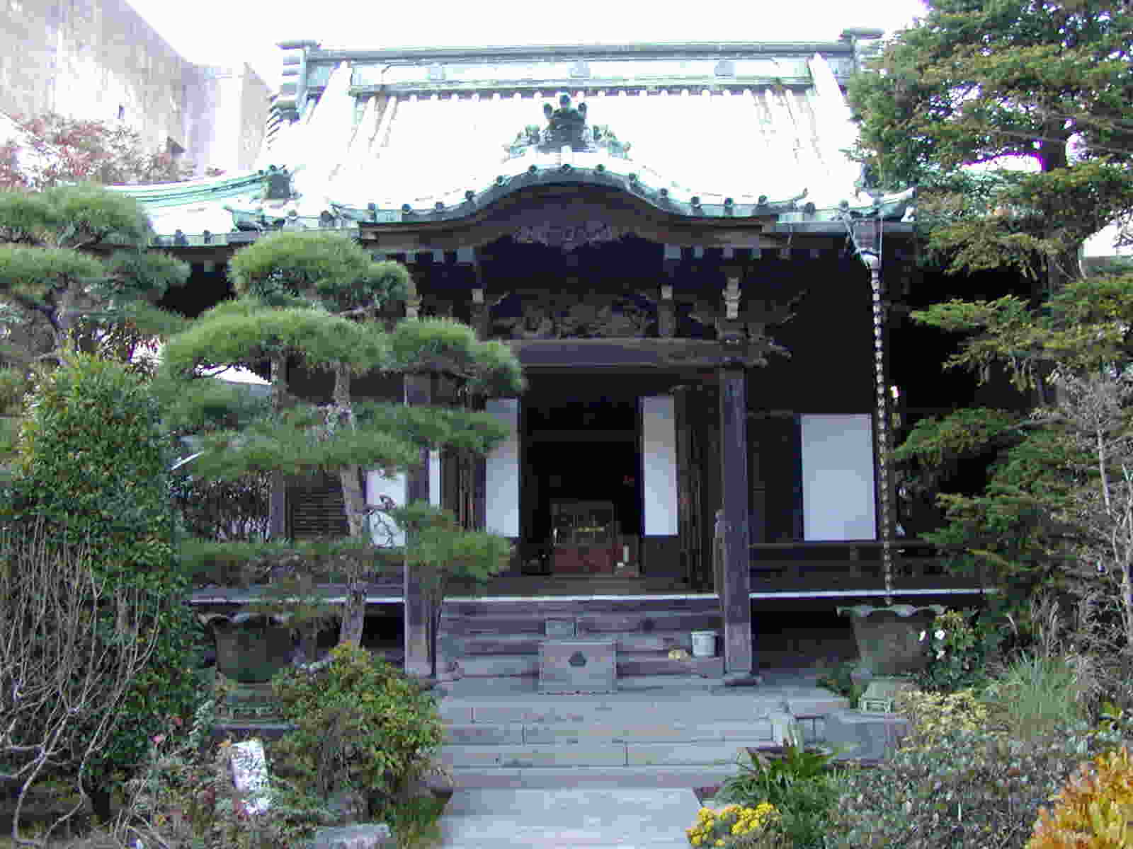 | 2002年1月6日 湘南便りその34:鎌倉散歩第8回 大巧寺 -------------------------------------------------- 鎌倉駅から若宮大路に向かってすぐ、道路の向かい側の横浜銀行と中央公民館に挟まれて、 小さな赤い門が見えます。ここが”おんめ様”と呼ばれ安産祈願で室町時代から庶民に親しま れてきた日蓮宗「大巧寺」(だいぎょうじ)です。 ここが安産の寺として全国的に知れわたるようになったのは、五世住職の日棟上人が、滑川 にかかる夷堂橋のたもとで乳飲み子を抱いた女性の幽霊に出会い、この霊を鎮めたことに端 を発します。この霊は、その後難産の上この世を去った秋山勘解由の妻女であることが判り、 安産の神「おんめさま」として丁重に祭られたそうです。 朱塗りの門を入ると、路地と間違えてしまうような参道の両側に椿、マンサク、ミツマタ、キョウ チクトウ、シュンラン、ムラサキシキブなどが植え込まれてこじんまりとした参道を歩きながら一 年中何かしらの花を楽しむことができます。 この参道をすすむと、本堂の横を回り込んで寺の正面へと抜けます。 実は若宮大路に面している朱塗りの門は裏門で、山門は小町大路側にあります。山門は質 素な門ですが、境内を若宮大路から小町大路へ通り抜けができるため、通りすがりに手を合 わせる地元の方々の姿もかなりみかけることができます。 この寺はかつて十二所にありましたが、頼朝が平家に大勝利をおさめたことで「大巧寺」と名 を改めてこの地に移されました。 また、本尊が「産女霊神」(うぶすめれいじん)で、「おんめ 様」と呼ばれ室町時代から安産や縁結びを願う人々から親しまれており、境内を訪れるとお腹 の大きな女性が目立ちます。 私が訪れた時は妊婦の方というよりは、そのお母さんというかお姑さんが多くおいででした。 お互い立場が同じせいか、会話が弾んでいるようで、「おたくさんは娘さんですか?」「いいえ 嫁ですの、今度が二人目です。」とか何とかの話が耳に入って来ました。 |