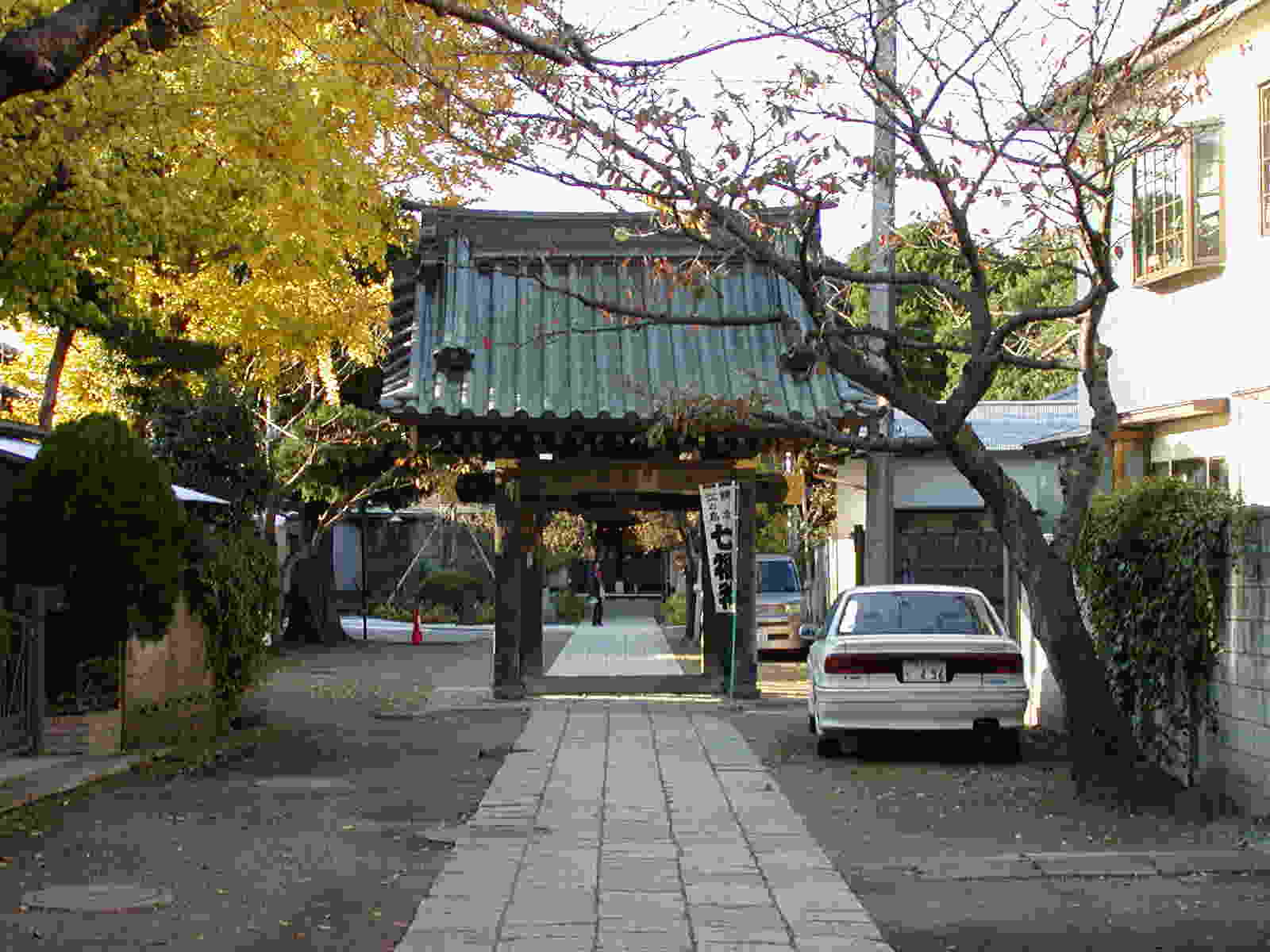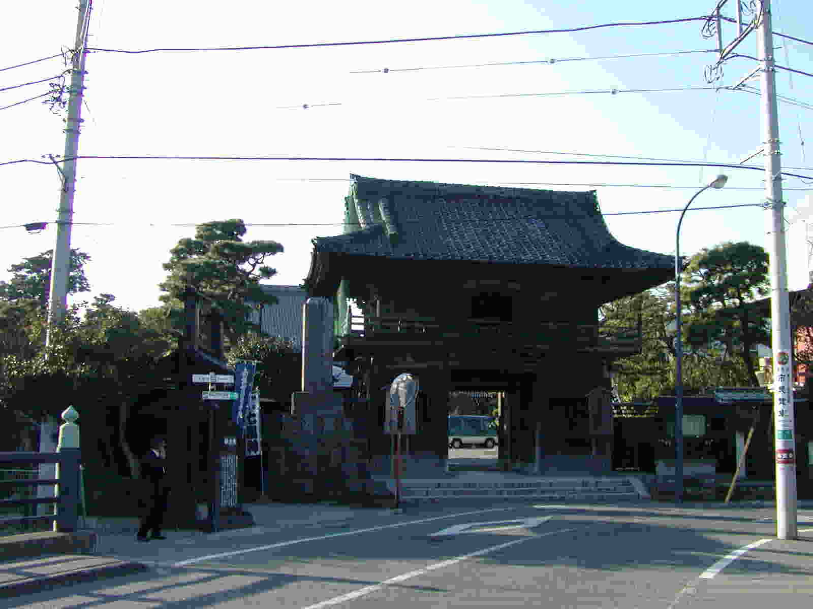 | 2002年1月20日 湘南便りその36:鎌倉散歩第10回 妙隆寺 -------------------------------------------------- 日蓮辻説法跡から小町大路を北へ少し歩きますと妙隆寺があります。 まるっきり普通の住宅街にまぎれているので、鎌倉・江ノ島七福神の旗がたなびいてい なかったら、ひょっとして気づかないかも知れません。しかし、そこはやっぱり鎌倉の お寺。少し奥まった先には小ぶりながらもいかにも歴史を感じさせる山門があります。 このお寺さんは、正式には叡昌山妙隆寺といい1385(至徳2)年源頼朝の御家人、千葉常胤(つ