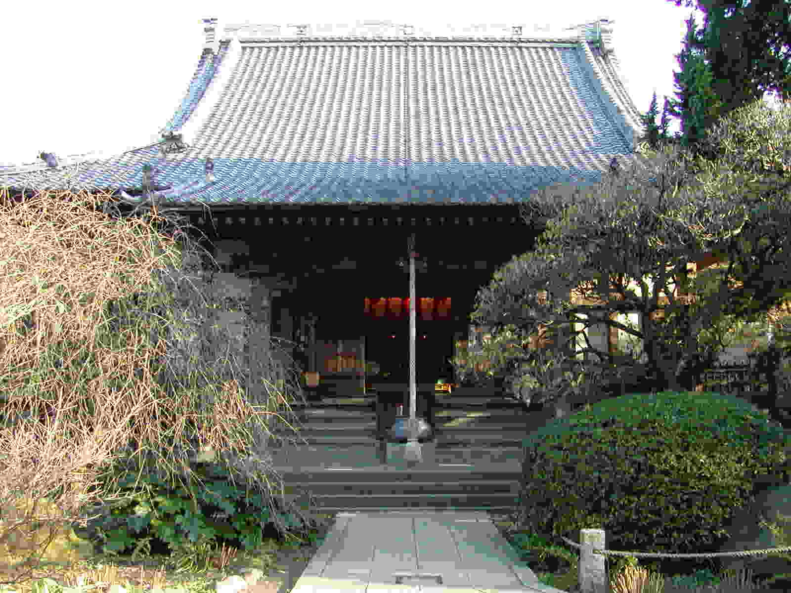 ねたね)の子孫である胤貞の屋敷跡に、日英を開山として建立された日蓮宗の寺です。 千葉胤貞が千葉の本領へ移るに及んでこの寺が建立されました。 現在本堂には、日蓮上人像、日親上人像、日英上人像、釈迦如来像、千葉胤貞像などが祀ら れています。 開山2世の日親は凄絶な布教ぶりで知られる僧で、「立正治国論」を説いて6代将軍・足利義 教をいさめようと京に上りましたが聞き入られず、逆に義教の逆鱗に触れて投獄させられてしま いました。その時に数々の拷問を受けますが、頑として自説を曲げなかったといいます。 その時に舌を切られ、頭に焼けた鍋をかぶせられる極刑を 科せられましたが、自説を曲げなか ったといいいます。 この逸話から「鍋かむり日親様」の名で呼ばれるようになりました。境内・池の奥の日親堂には 日親上人の石像が安置されています。 寺の墓地には演劇界で名を残した丸山定夫の墓碑があります。 |