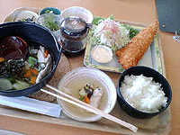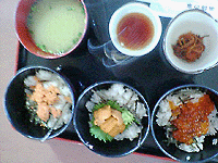 ![]() おいらは、サケ、イクラ、ウニのミニ丼セットを注文したが、たいしたことがなかった! |
