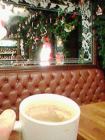 19:00函館町中に出て、炉端焼き「あぶり庵」なる店に入る。オープンしたばかりでジョッキサービス、喜びも束の間、カウンターで垣間見ていて、段取り、手順など未熟さ一杯。この先、大丈夫だろうかと心配になるほどであった・・・。 | 20:40「エスカル函館」の対面、ずっと気になっていたハンバーガーのお店「ラッキーピエロ」でボリューム満点チーズバーガー&コーヒー。なぜか店内はサンタクロース人形で溢れていた。 |