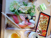 18:00船室にて、苫小牧のスーパーで買った握り鮨(ウニとイクラは撮影前に食べてしまった!)の夕食![]() |