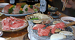 4年ぶりとなった一ノ瀬茶屋。宴席メニューは、バーベキュー、刺身、天ぷら、etc。ビールにワイン。開放感いっぱいの食事処だが、テーブルの下には蚊取り線香。虫も飛びこんでくる夏の夜、明日の釣りの話などワイワイと過ぎてゆく・・。