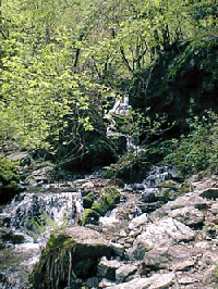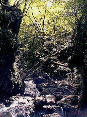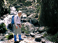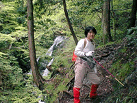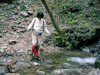途中、ちょっとした沢登りのスリルもあり、雨で増水したときには、このコースは危険。鎖場も1カ所、登りよりも下りが滑りそうで怖かったね。