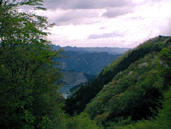 ここからさらに木の階段の登りがあって、高度をかせぐ。大きく右に曲がるところで展望が開ける。