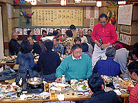 夜6時から早朝テニスクラブ忘年会、八柱「大漁船」会費5000円。40数人参加=写真左。