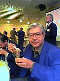 夕刻より虎ノ門パストラルにて福島・檜枝岐(ひのえまた)村が主催する「檜枝岐そばの夕べ」の集いがあり、チョーさんとともに出席した。尾瀬檜枝岐温泉、くつろぎの宿であるますや旅館の主(あるじ)であり、村議会議長である星守氏(=写真左)とは、かねてより縁(えにし)ある仲なのだ。