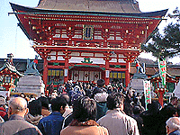 朝食後、平安神宮で初詣。弟・孝二の案内でいろいろドライブ後、伏見稲荷へ、駐車場料金2時間3000円にはびっくり。人混みにもびっくり(=写真左)。