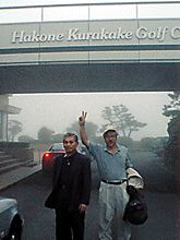 朝9時、箱根くらかけゴルフ場は、あたり一面真っ白、50メートル先が見えないという“霧にむせぶ”高原であった・・。写真は帰り際、夕刻の霧の様子がうかがえるだろうか?(撮影=M谷くん)
