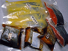 またまた個人的小歓!新潟のオー君から「鮭の焼漬」「越の氷室漬」など“日本の味”(=写真左)が届く!うれし〜い!