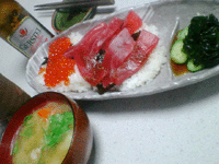 今日は“休肝”日!今宵は、「鮪赤身&いくら」丼と豚汁=写真。イトーヨーカドーの刺身は、色はいいけど味がいまいち!?ノンアルコールビールは、ドイツGERSTEL (ゲステル)のKLASSISCH-MILD 330mlを1瓶。