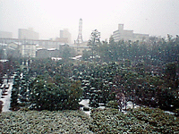 朝起きると。ちょっとした雪景色・・・。窓を開けて写真を撮る。おーっ、さぶい!