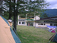日光・湯元キャンプ場目指して8時半出発。昼ごろ現地に着くと、ちょっと様子が変わっている。いつも展望風呂とトイレを利用していた湯元ロッジ(=写真の建物)が夏季営業していないではないか。環境省ビジターセンターのキャンプ場管理となっていて、公衆トイレもちょっと遠い(でも2重網戸で清潔、新幹線や飛行機仕様の便器も良し)。管理事務所の窓に貼ってある各施設の日帰り温泉の時間と料金表(ほとんどのホテル・旅館で、入浴時間が15時までとなっていた)をチェック。徒歩2分、夕方18時から19時30分の時間帯に入浴可(入浴料600円)の「日光高原ホテル」を選択する。そうと決まればさっそくテント設営、温泉までの時間までたっぷり宴会モードに突入(?)しよう!
