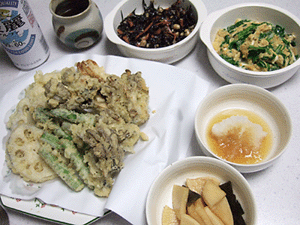 午後、ピアノ練習etc。夕方「健美の湯」。夕食は、秋野菜の天ぷら、ニラ玉、ひじき煮(K大姉差し入れ)、大根醤油漬け(稲垣家差し入れ)、ロング缶&350ml缶、熱燗。「食べ過ぎにご注意!?」わかっとるわい。