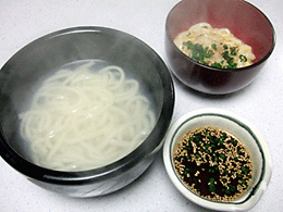 朝、高槻の父上より「亀城庵さぬきうどん」生麺が届く=写真。前回送られてきて、まだ残っている「亀城庵さぬきうどん」(並麺300g)を早く消化せねば・・・!そこで本日、今週最初の“休肝”日とする。熱々かけうどん&ちらし寿司&独レーベンブロイ・アルコールフリー(アルコール分0.5%未満)330ml。まいう〜!!