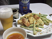 長寿の湯」で汗を流して、キリンのキャンペーン「勝ち樽」コース“ご当選”の景品、専用サーバー付き1520ml缶を味わう“一人宴会”となる。ご近所に中田パパがいたらご招待するのになあ!?残念!アスパラなど野菜天ぷら&ちくわ天、掻き揚げなどで大満腹!応募シールを一生懸命ハガキに貼って、こんなふうにいざ成果が出てみると、なかなか面白いワイワイ・・。