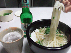 郵政民営化法案の衆院通過が成るか!?という1日になりそうだが、よくわかりませんねえ。要するにどうなるんですかね。ところで拙者のきょう1日は、8月夏休みのための保養所予約、歯医者に行ってマウスピース型スプリント(暫間的咬合治療用口内装置)をつくる検査、それから・・・・・本日“休肝”日!カトキチ冷凍さぬきうどんを2玉茹でて、熱湯で「ヒガシマル粉末つゆの素・うどんスープ」を溶き、細ねぎを刻んで「素うどん」風に。うどんスープは関西風のまろやか味でグッド。いつもの独レーベンブロイ・アルコールフリー(アルコール分0.5%未満)330mlは、今宵、飲む暇がなかった。熱いうどんを一気にすすり上げる。まいう〜!