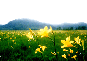 この写真2点は昭和63年(1988年)7月24日の尾瀬ケ原、20年ぶりの大開花と言われたときのニッコウキスゲ(=撮影しゅうちゃん)。多分、現在もこんな情景なんだろうな。