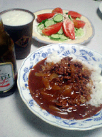 夕食メニューはハッシュドビーフ(というかハヤシライス)=写真。