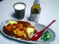 夕食はオムピラフ・ハッシュドビーフ添え=写真。
