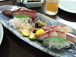 解説=「漁師物語り」とは、地元の三崎漁業協同組合が直営する物産センター。岬(はな)あじ、岬(はな)さば、とても美味=写真右。伊勢海老、さざえなどの炭火焼きに舌鼓を打ちながら生ビール!!