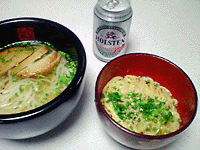 本日、今週第1回目の“休肝”日。「亀城庵さぬきうどん」(細麺2袋、もうこれで在庫ありません!次回は並麺か太麺がいいなあ!)を茹でて、「釜玉うどん」と「熱熱(あつあつ)」かけうどんでいただく。ノンアルコールビアテイスト飲料は、独ホルステン(アルコール分0.03%)330mlを1缶。