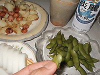 大阪、蝉の鳴声がうるさい。午前中病院にて経過順調な母上と語らった後、「のぞみ」14時6分京都発。夕方の松戸駅では江戸川の花火大会でたくさんの人出。家に着いて新潟のオー君から送られてきた枝豆(=写真)などでロング缶2つ&350ml缶。