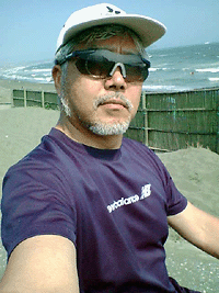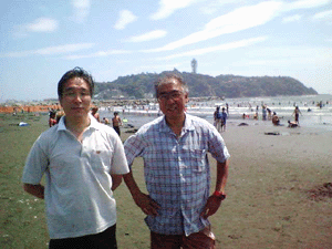 茅ヶ崎のM島君(=写真中央)新居訪問と、Tバックのギャルの姿求めて自転車での海岸10キロ散策と遊泳。いやはや猛暑のなか、けっこう荒い波に揉まれて面白かったワイワイ。