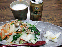 夕食は、中華丼&「とことん飲める本格ビアテイスト飲料」と缶に印刷してある豪州「BREWRY(ブローリー)」プレミアムラガー(アルコール分0.9%以下)355ml缶。これで“週に2回休肝日ノルマ”達成。