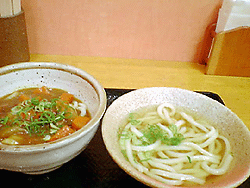 今週2回目の“休肝”日。例によって、さぬきうどん!「釜玉うどん」&「煮込み風味の冷や熱うどん」=まいう〜。これで亀城庵「さぬき本膳うどん」在庫なくなりました!