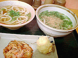 実行のためにも、また「はなまるうどん」秋葉原南店にいくかノゥ??かけうどん・小( 105円)、ごまねぎうどん・小(294円)、トッピングで海老掻き揚げ、半熟玉子天。〆て620円也。「かけ」と「ごまねぎ」、似たようなものだったがネギの量が違う。人気メニューだそうだが、しかしちょっと高いな。「かけ」より100円高くらいでいいのではないか。
