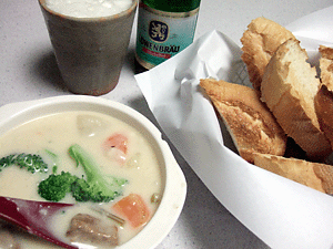 宣言通りの“休肝”日である。昼食は農協ビル地下「永楽」でタンメン。夕食のメニューは、昨日のポトフにホワイトソースを加えればクリームシチューとなる。バケットパン、独レーベンブロイ・アルコールフリー(アルコール分0.5%未満)330ml(ちなみにポトフ鍋にカレーのルーを入れればカレーライスがいただける)。もちろんシチューはお代わりあり。これだけでは、ちょっと???だよね。