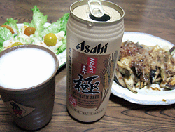 夕方、じゅん君が静岡から来訪。三枝子さん揚げ立ての海老&野菜天ぷら、サラダなど。冷蔵庫に冷やしてあった「麒麟淡麗アルファ」ロング缶2つ&350ml缶4つすべて無くなり、芋焼酎の水割り。