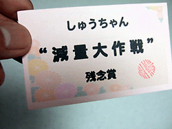 “今度こそ!減量彼岸(悲願?)大作戦”は見事に失敗!罰金2万円が・・・!! いつか、リベンジ!の新企画を考えなくちゃ!? (2007.9.24) |