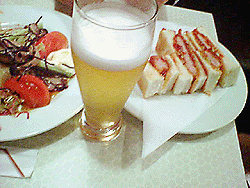 週末外食は三枝子さんリクエストで、銀座「みやざわ」に18時40分。カツサンドとサラダ、1つずつ注文して2人で分け合う。熱々のヒレカツが挟まったカツサンド、美味しいがちょっと小さい。これで900円=写真。生ビール2杯。期待していた玉子サンドはこの時間のメニューには無かった!?この店に入ってくる(出勤前の)銀座のお姐さん、小生の席の後ろを通ると高そうな香水のかおりが・・。この時間、サンドイッチ類は出前が多くてお兄さん方は大忙し。なんとなく落ち着かない雰囲気で早々に「次、行ってみよう!」となり、三枝子さんお薦めの「浜町亭」へ。牡蠣鍋、にら玉炒め、寄せ豆腐、ジョッキ2杯。「3軒目は寿司で軽く冷酒・・」というワタクシの要望は却下されて帰宅の途に。北千住駅構内「ナチュラル・ステーション」コーナーでバナナジュースと健康サンド。三枝子さんは青汁。ここだけは小生が“ゴチ”して1000円。