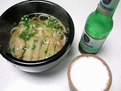 笹やんのピアノレッスン、先日の発表会の講評「やっぱりピアノの“呂律”が回っていなかった」。そうかなあ??今宵は今週2回目“休肝”日、「さぬきうどんNRE&めりけんや」上野2号店にて、きつねうどん(大)500円。これだけではもの足りない。帰宅して、スルメ焼いて独レーベンブロイ・アルコールフリー(アルコール分0.5%未満)330ml。